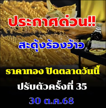 สรุปราคาทองวันนี้ 30/10/2568 16:54 ครั้งที่ 34