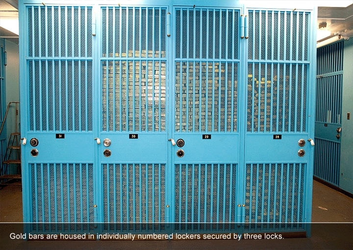 ปัจจุบันมีการจัดเก็บทองคำมากกว่า 400,000 แท่ง มีน้ำหนักรวมประมาณ 5,000 ตัน พื้นที่ของคลังทองคำแห่งนี้กว้างกว่า 27,870 ตารางเมตร หรือเทียบเท่าสนามฟุตบอลเกือบ 10 สนาม