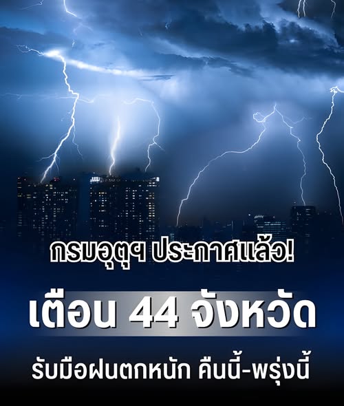 มีฝนฟ้าคะนอง ร้อยละ 60 ของพื้นที่ และมีฝนตกหนักบางแห่ง